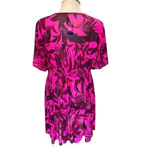 Torrid Plus Size 1 Hot Pink Tropical Mesh Smocked Waist Swimsuit Swim Cover Up