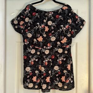 Torrid Plus Size 1 Top Black Floral Pattern Short Sleeves High Low Pleat