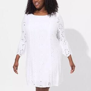 Torrid Plus Size 2 White Mini Woven Challis Embroidered Eyelet Bell Sleeve Dress