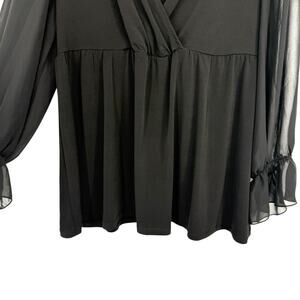Torrid Plus Size 2X Black Slinky Knit Wrap Top Sheer Balloon Sleeve Blouse