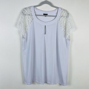 Torrid Plus Size 2X Studio Knit Lace Sleeve Top White
