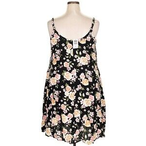 Torrid Plus Size 2x 18 20 Black Floral Challis Trapeze Dress Sleeveless Pockets