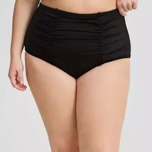 Torrid Plus Size 3 Black High Waist Ruched Full Coverage Swim Briefs Bottoms New