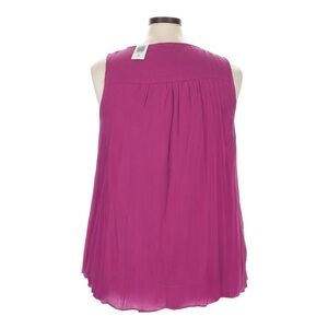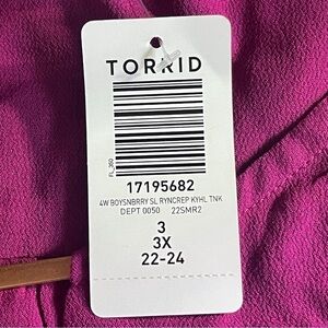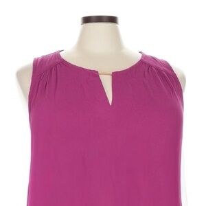 New with tags Torrid sleeveless blouse in a rich boysenberry pink. Features a scoop neckline with metal keyhole accent, pleated details, and lightweight crepe rayon fabric. Perfect for layering or wearing alone for a polished look.