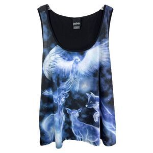 Torrid plus-size Harry Potter tank top, 3X Patronus graphic sleeveless top, Hogwarts-themed plus-size tank, Torrid blue and black Harry Potter tank, women’s Harry Potter plus-size shirt, Patronus design sleeveless tank for women, Harry Potter Hogwarts plus-size summer top, Torrid 3X magical graphic tank, plus-size Harry Potter fan merchandise, blue and black Harry Potter sleeveless top.