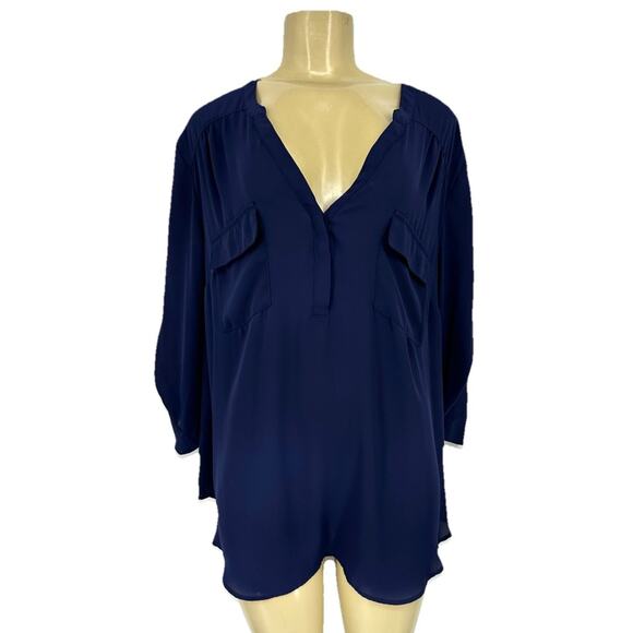 Torrid Plus Size 3X Women V-neck Harper Shirt Blouse Navy Blue Semi Sheer 35-24