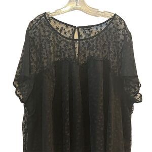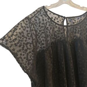 Torrid Plus Size 4 Black Star Mesh Overlay Blouse Short Sleeve Casual