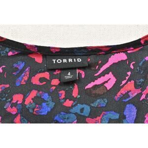 Torrid Plus Size 4 Peplum Blouse Top Black Pink Blue Animal Print