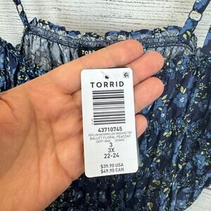 Torrid Plus Size Blue Floral Smocked Peplum Sleeveless Top Size 3X