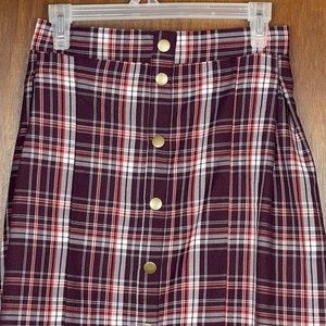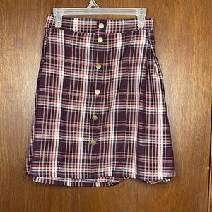 Torrid Plus Size Burgundy Purple Plaid Twill Pleated Button Front Mini Skirt