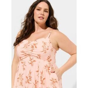 Torrid Plus Size Challis Skater Mini Dress Pink Floral Print Dress Size 0 Plus