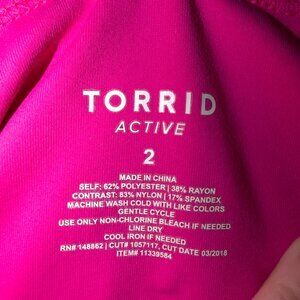 Keywords: Torrid activewear, plus size sports bra, pink workout bra, strappy back bra, comfy wireless bra, Torrid athletic top, curvy fitness wear, bright pink athleisure
