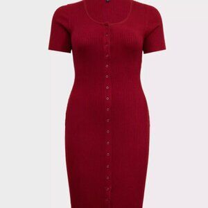 Torrid Plus Size Midi Rib Knit Snap Front Dress BIKING RED 3x 22 24 PLUS