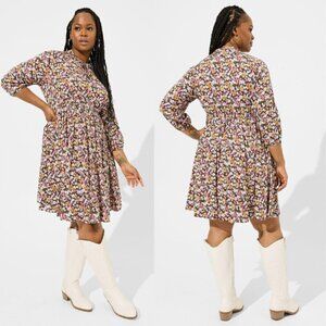 Tags: torrid, plu size, mini, challis, dress, floral, casual, a line, flare