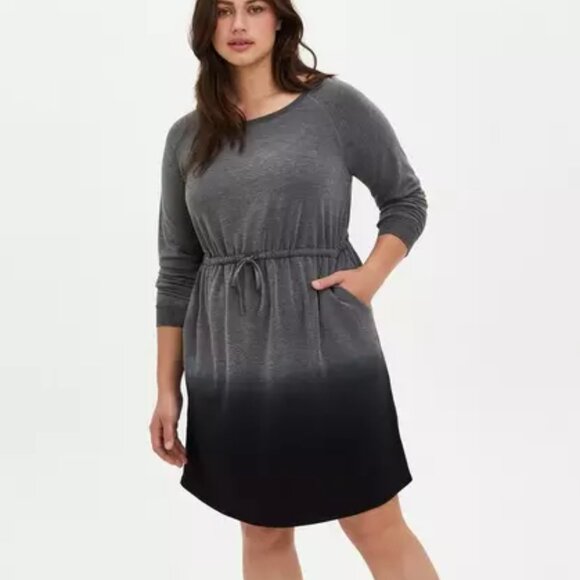 Torrid Plus Size Off-Shoulder Skater Dress French Terry Heather Grey Dip Dye 4X