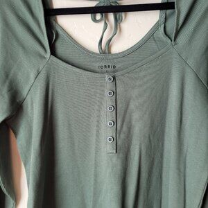 Torrid Plus Size Ribbed Square Neck Henley Blouse