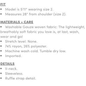 Torrid Women's Plus Size V-Neck Ruffle Strap Tank Top Blouse: brand new with tags and from a smoke-free and pet-free home. Ships same or next business day!