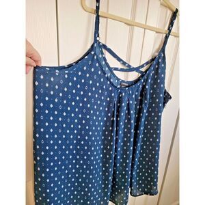 Torrid Plus Size 4 4x Navy Blue/White Criss-Cross Back Cami Tank Blouse