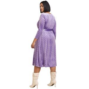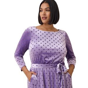 Torrid Plus Sz 2X Dress Midi Burnout Velvet Boatneck Dress Purple Polka Dot 1005