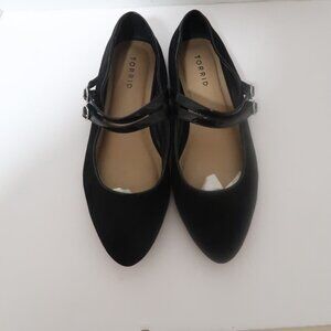 Torrid Pointed Toe Mary Jane Flats Sz 8 Wide Fit Black Strappy Ballerina Shoes