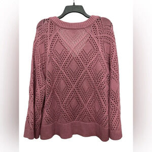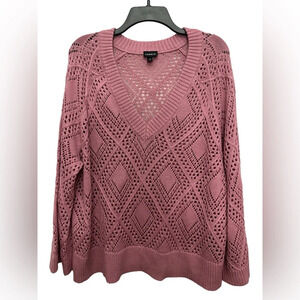 Torrid Pointelle Pullover V-Neck Sweater Size 1 1X Foxglove Pink Open Knit