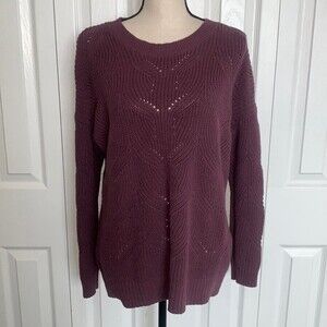 Torrid Pointelle Ribbed Open Knit Pullover Eggplant Purple Sweater Plus 1x