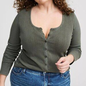 Torrid Pointelle V-Neck Henley Long Sleeve Top Size 3