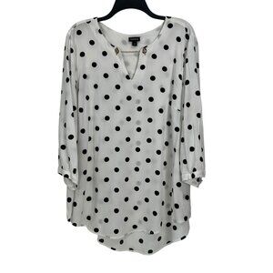 Torrid Polka Dot V-Neck Chain Detail Top Blouse SZ 2XL 3/4 Sleeves White/Black
