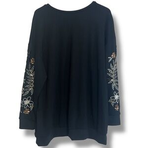 Torrid Ponte Crew Neck Drop Shoulder Floral Sequin Sweatshirt Sz 3X Glam-Boho