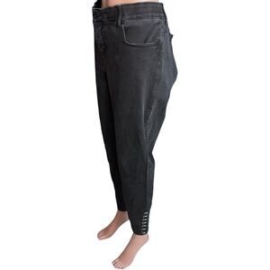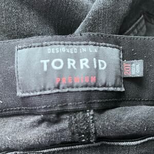 This pair of Torrid Premium jeans are the bombshell skinny style. They have a comfortable elastic waistband, and hook, and eye embellishment on the side bottom hems. 65% cotton, 26% rayon, 7% polyester, and 2% spandex. Machine wash and tumble dry. Western, casual, ranch, core, coastal cowgirl.