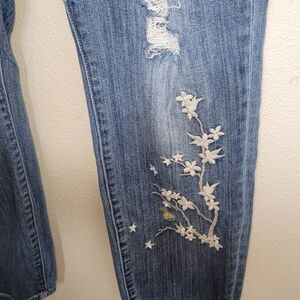 Excellent pre-owned condition. Show some signs of wash wear. Women's plus size Torrid Premium Boyfriend Jeans Medium Wash w/ Floral Embroidery size 16R.