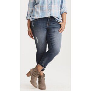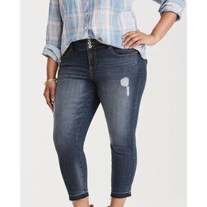 Torrid Premium Stretch Cropped Jeggings - Dark Wash with Destruction and Frayed