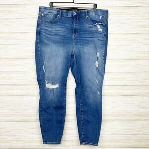 Torrid premium stretch distressed sky high skinny jeans in size 24R.