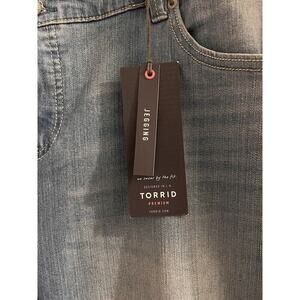 Elevate your denim game with these Torrid Premium high-rise skinny jeans/jeggings in a beautiful shade of blue. Designed with a 5-pocket design, zip and button closure, and a high-rise waist, these jeans are perfect for any occasion. The crop and stretch features provide comfort and style, while the medium fabric wash enhances the overall look.