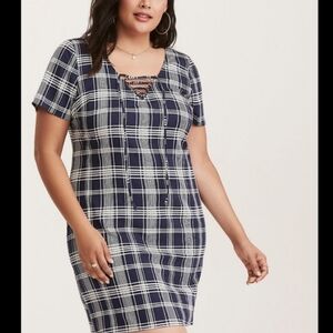 Torrid Preppy challis plaid lace up short sleeve dress large