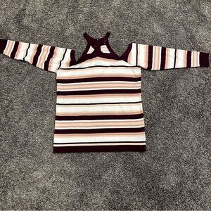 Key words : plus size clothing, plus size sweater, winter sweater, striped sweater, long sleeve sweater, cold shoulder sweater