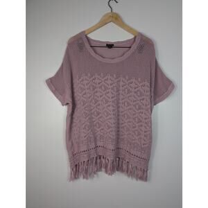 Torrid Pullover Short Sleeve Fringe Hem Sweater in Mauve. Open stitch knit, scoop neck.