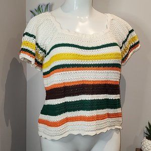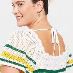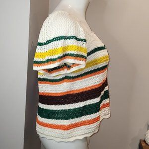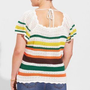 Torrid - Pullover Square Neck Flutter Sleeve Sweater in White with Multi Stripes