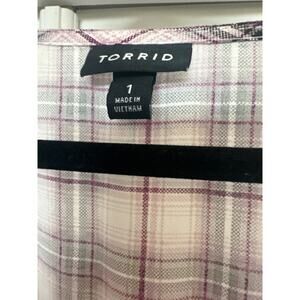 Torrid Purple, Black, and White Plaid Button Down with Tie Top