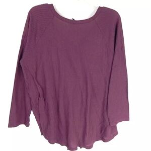 Item: Women's Purple Button Front V-Neck Waffle Knit Thermal Tee