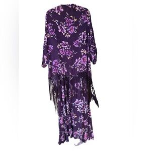 Torrid Purple Floral Challis Trapeze Maxi Dress And Fringe Kimono size 0/L/10