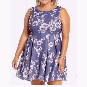 Torrid Purple Pleated Floral Fit & Flare Dress Sz 24 A-Line Sleeveless Skater