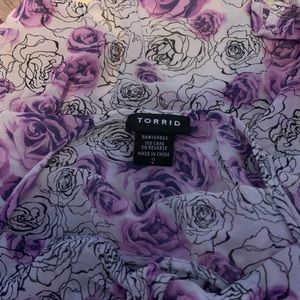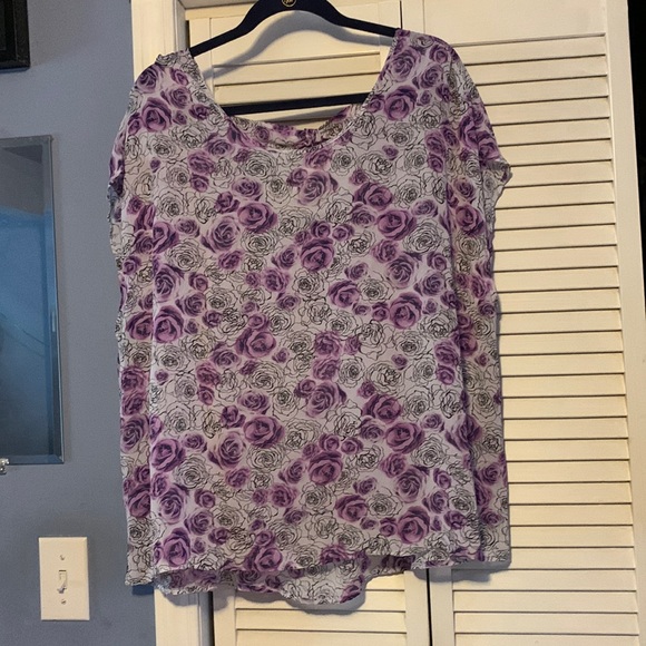 Beautiful purple roses. Has like a bow in the back. Cap sleeves. Could wear a top underneath to make it versatile. Size 2