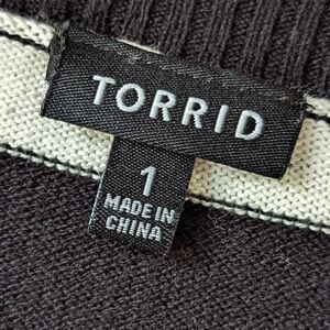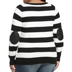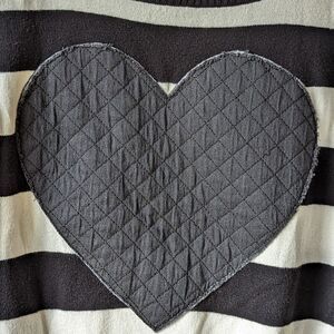Torrid Quilted Distressed Heart Patch Monochromatic Sweater sz 1X Elbow Patches Striped
