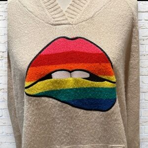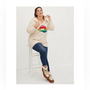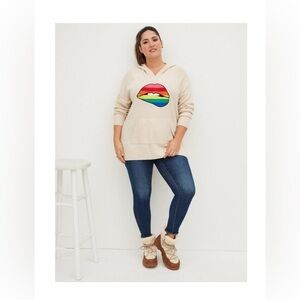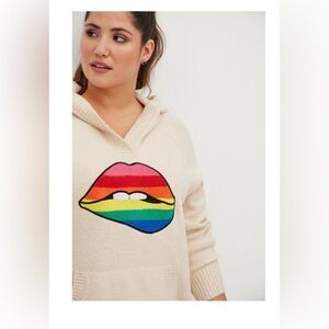 Torrid Rainbow Lips Oatmeal Raglan Hoodie Sweater Size 1 (1X) - Pride