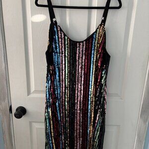 Beautiful 1X rainbow sequin dress with spaghetti straps. Great for a holiday party!
