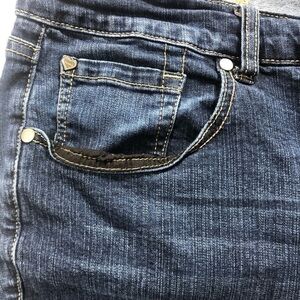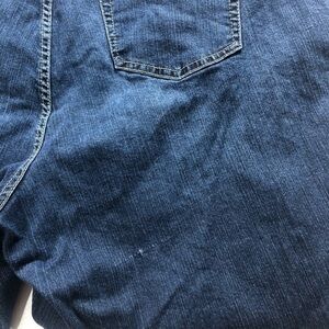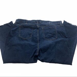 You are buying a pair of Torrid raw hem jeans. There is a pull on the back of these pants. Front pockets fold down. Please see all photos for signs of wear. Size 24.