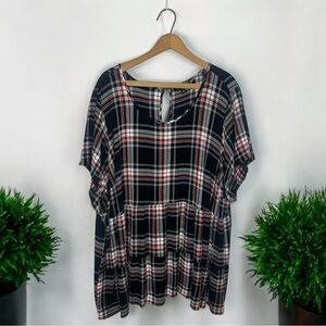 Torrid Rayon Crepe Tiered Plaid Babydoll Peplum Top Size 5