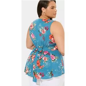 Torrid Rayon Slub Button Up With Waist Detail Tank floral blue Size 2