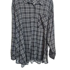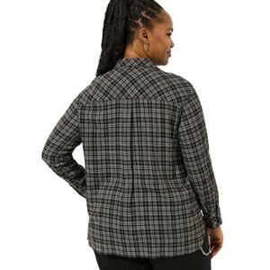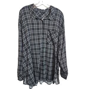 Torrid Rayon Slub Drop Shoulder Button-Front Shirt Party Plaid Deep Black 3X NWT
